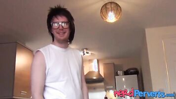 Frisky redhead Zara Du Rose sucks geeky producers POV dick